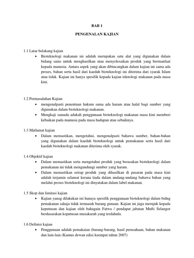 Kajian 1.5 persoalan kajian 1.6 kepentingan kajian 1.7 skop kajian/ limitasi kajian 1.8 . Tempat atau sasaran uji kaji dilakukan .